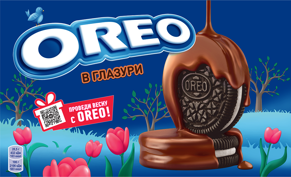 Печенье OREO с какао и начинкой с ванильным вкусом, покрытое шоколадной глазурью с какао