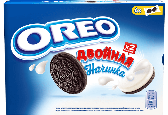 Печенье OREO с какао и двойной начинкой с ванильным вкусом